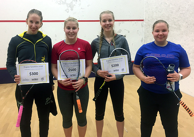 Squashin SM-kilpailut pelattiin Helsingissä Tali-hallissa 16. - 19.2.2018. Naisten sarjan mestariksi pelasi ESRC:n Emilia Korhonen, joka voitti loppuottelussa HSRC:n Riina Koskisen 3 - 1. Pronssin voitti oululainen, HSRC:tä edustava Milla Uusitalo.SqK:n Henrietta Huuhkan sijoitus oli 5.