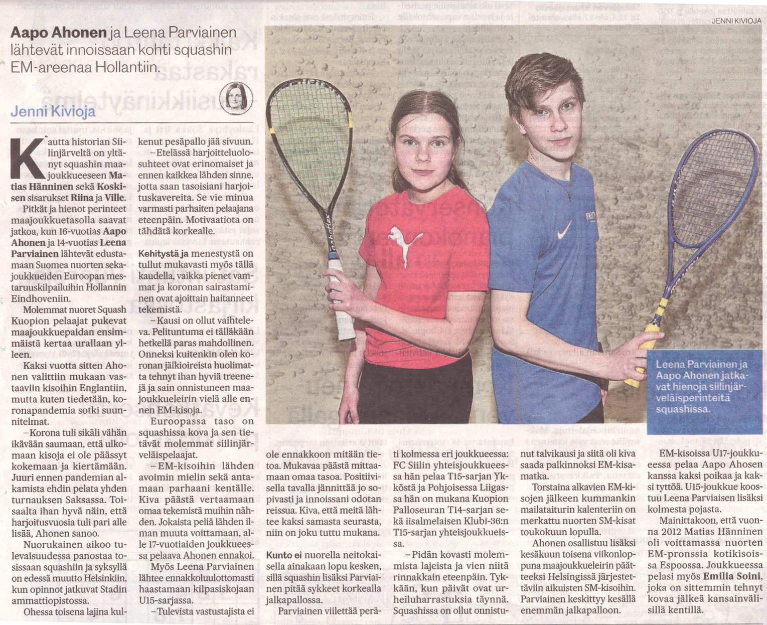 Uutis-Jousi on julkaissut kaksi juttua Topin tekemisistä Squash-Kuopiossa.