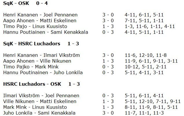 Tuloksias voi katsella tarkemmin www.squash.fi