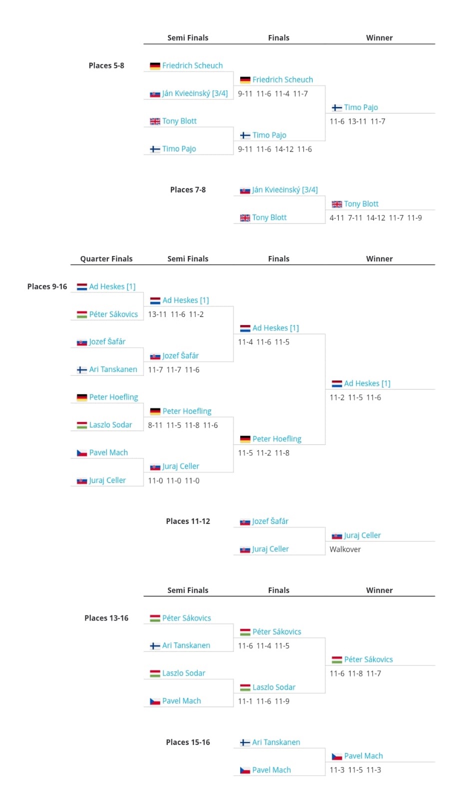 Veikko Herola - Lasse Niinivuori 3 - 0 11-6. 11-6, 11-4