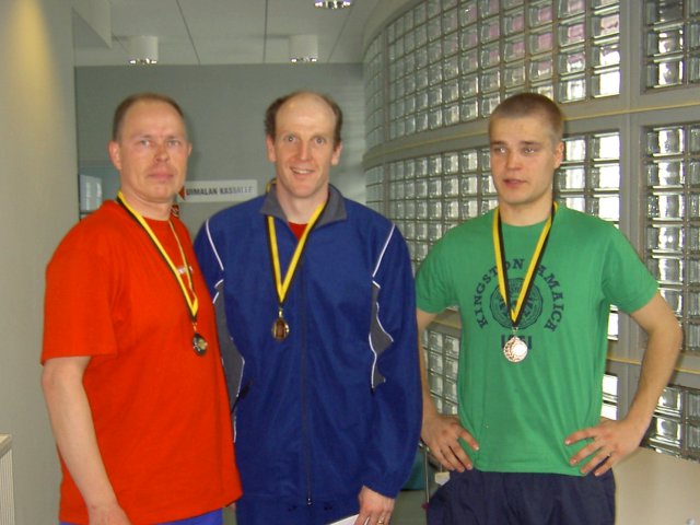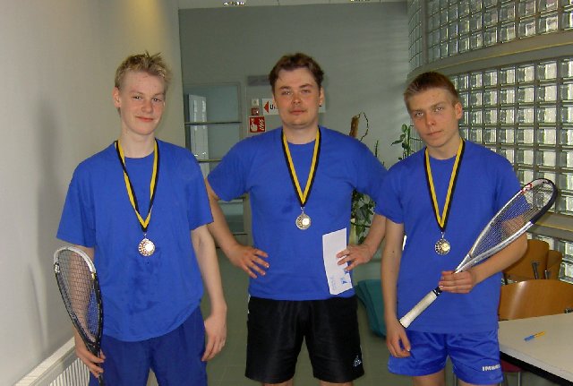 Kilpasarjassa SqK:n edustajista voiton vei Timo Herola (kesk), toiseksi tuli Heikki Olkinuora (vas.) ja kolmanneksi Jani ylsi Jani Kokkonen (oik.)