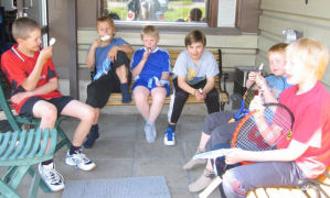 Tenniskisan voittajaksi selviytyi Krista, Sannan tullessa toiseksi. Vieraspelaajana oli Oulusta saapunut Eve, joka oli Kristan luona lomaa viettämässä. Poikien "sarjassa" Henri voitti Teemun.