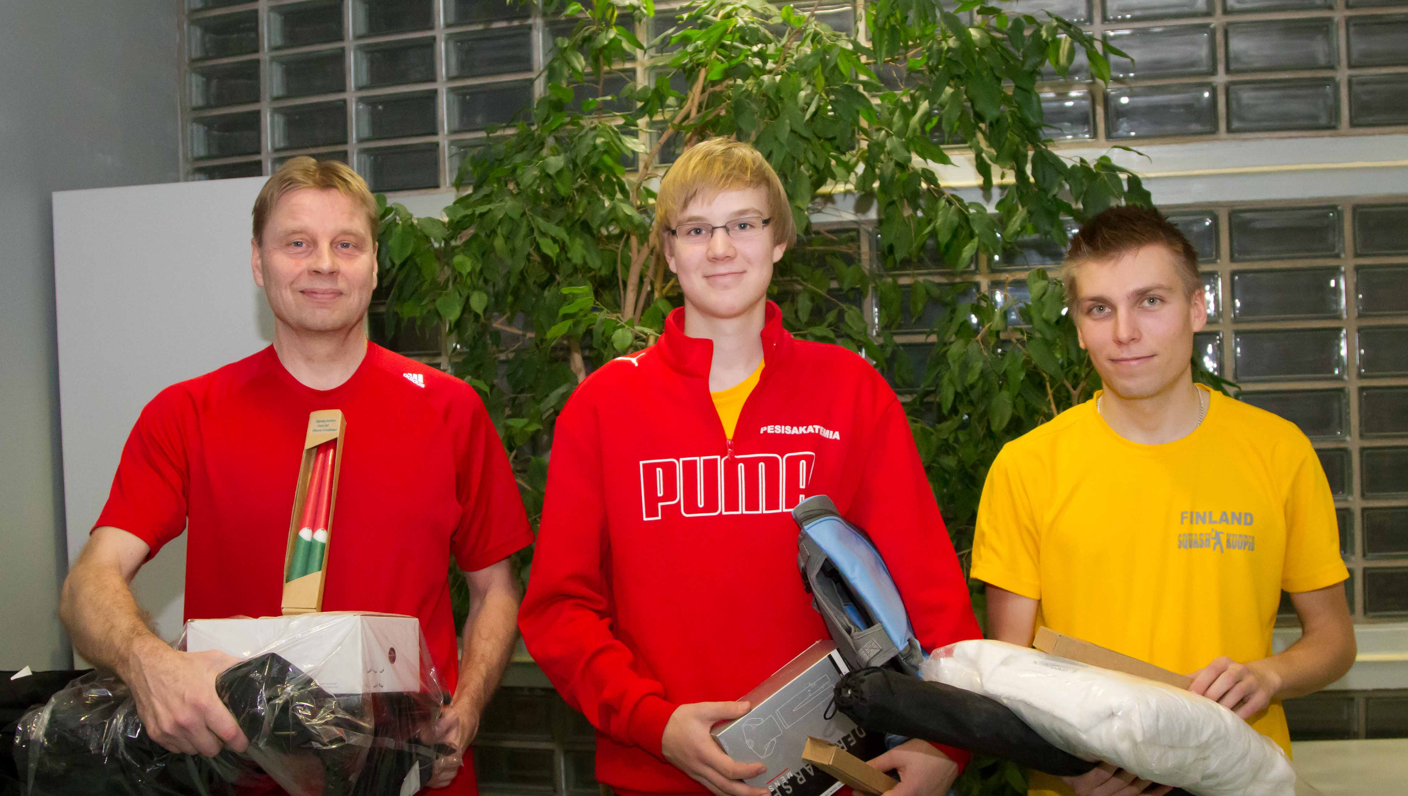 Kuvassa vas. Sami Ikonen (Friday Tampere, hopeaa), Topi (SqK, kultaa) ja Tuukka Tarkkila (Friday Tampere, pronssia).