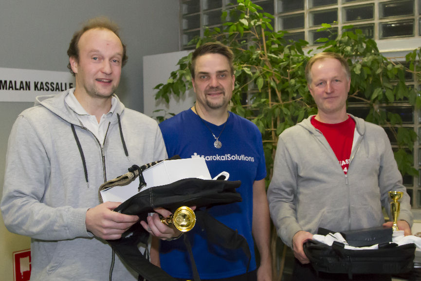 II-kaavion mitalistit: oik. Nuutti Ruokangas, J-P Salminen (voittaja), Timo Pajo oli jo saunassa.
