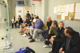 Juha Hatjasalo takanurkkaboastissa. Tommi Ryyppö seuraa.